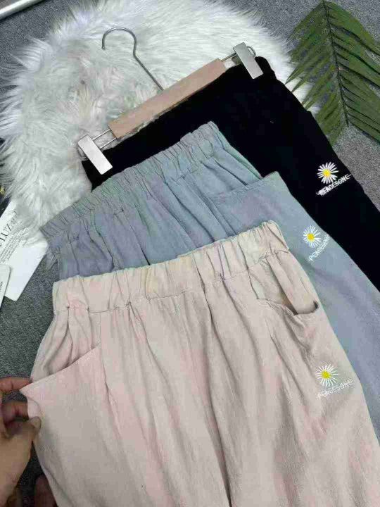 捡漏309条刺绣菊花麻棉休闲修身女裤冰丝直筒裤,独立包装,码数M-3XL(1-5),大货图四款为主,货号118#4