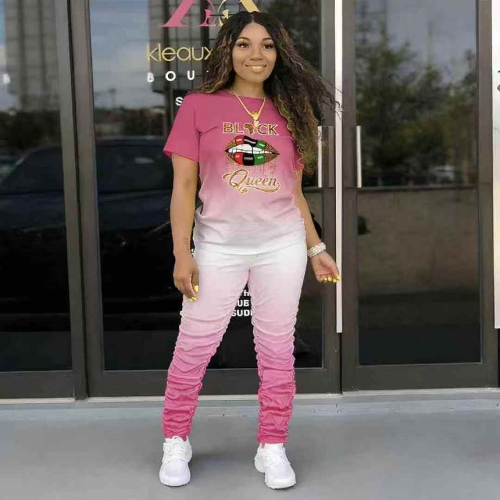 7.5清欧美时尚休闲运动渐变色印花套装,整款多色,数量124套左右,码数S-2X...