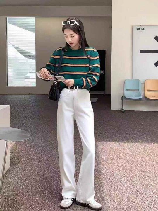 [月亮]:小个子休闲直筒窄版白色牛仔裤