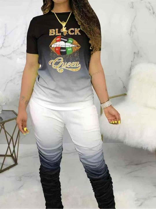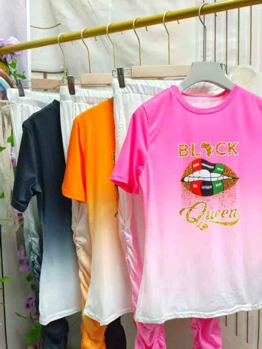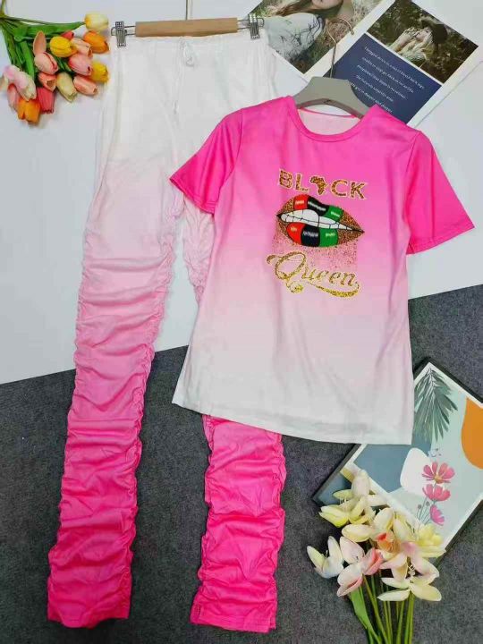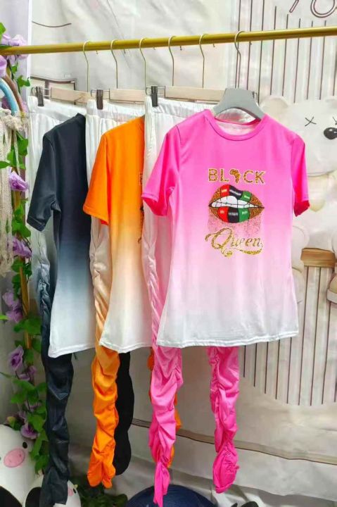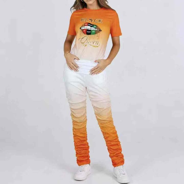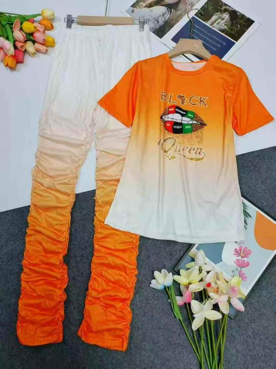 7.5清欧美时尚休闲运动渐变色印花套装,整款多色,数...