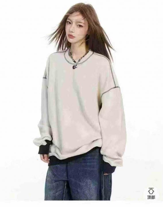 ☕️纯棉毛圈卫衣美式复古圆领拼接撞色插肩卫衣女春秋款上衣287件全清8.8元 分货9.9元 码数S- XL,单款单色,独立包装[庆祝][庆祝]。 货号:1323