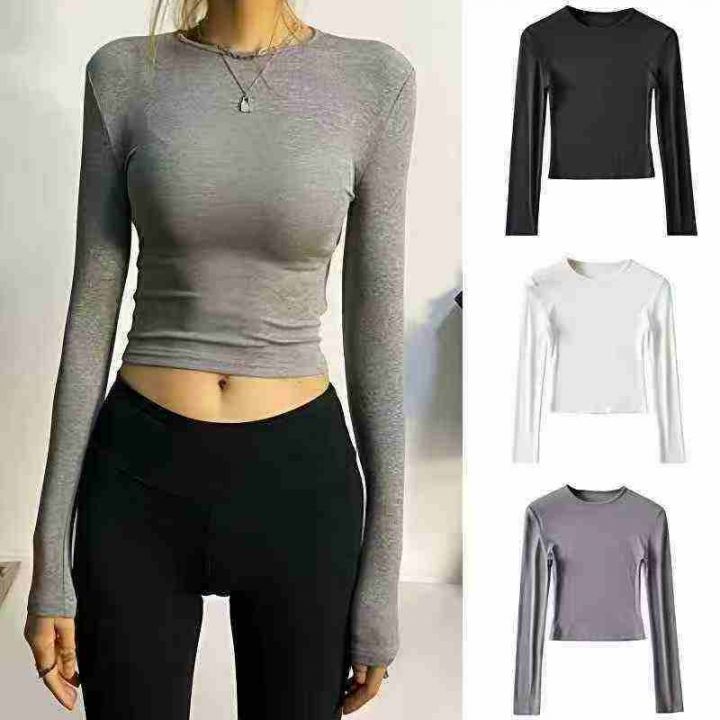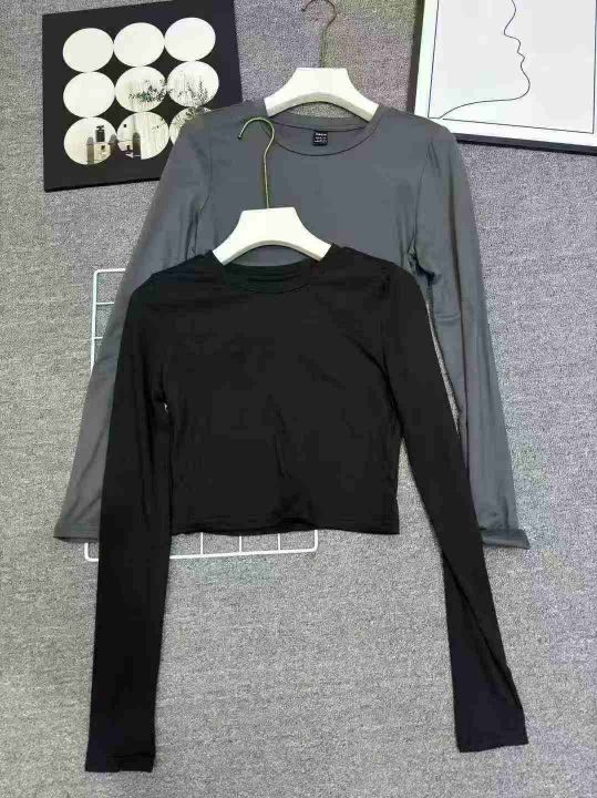1500件,欧美风性感紧身内搭长袖打底衫纯色短款T恤女...