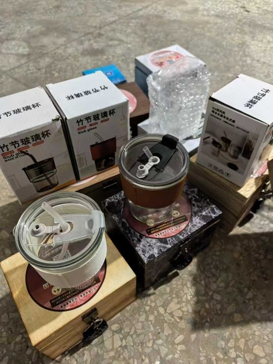 高端随手礼,2.x元一套高档密码带锁木盒竹节玻璃杯 实...