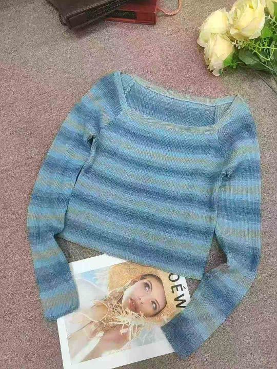 320件法式春秋季修身显瘦条纹长袖针织衫上衣,独立包装,均码单款两色,超低7.8元清分货十一[庆祝][庆祝]。 货号:1323