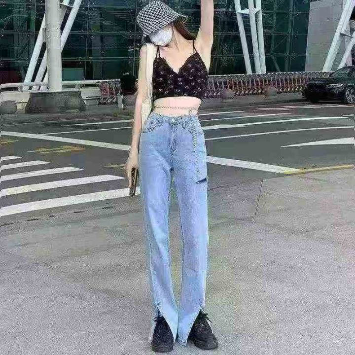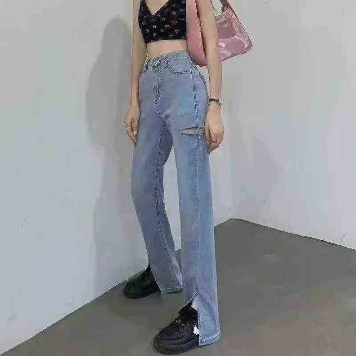 垂坠感女装mm宽松显瘦高腰破洞开叉牛仔裤,网络图仅供参考,码数:XS-XL,数量281条,独立包装。 货号:1323