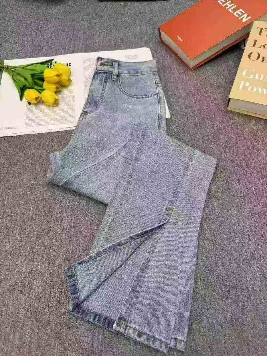 全清9.8垂坠感女装mm宽松显瘦高腰破洞开叉牛仔裤,网络...