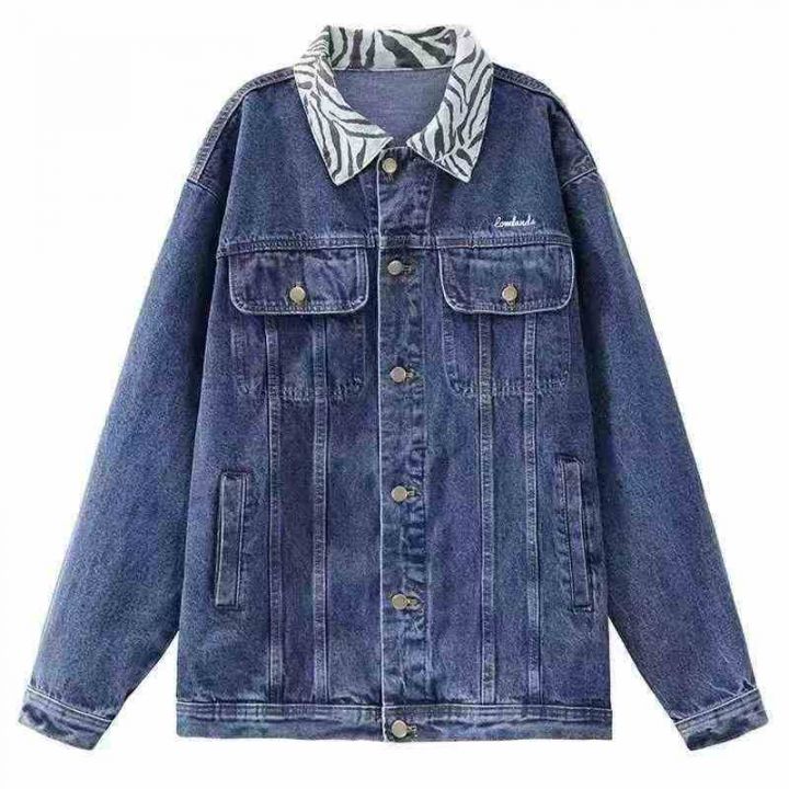 美式复古oversize斑马纹领牛仔外套男生秋季高街潮牌宽松工装夹克350件,独立拉链袋包装,货品干净整洁,版型够大,尺码M~3XL全清福利价22.8元,分货➕1。 货号:1323