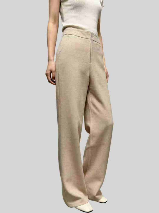 天猫精选500条 新款软糯垂感显瘦高腰直筒毛呢休闲拉链...