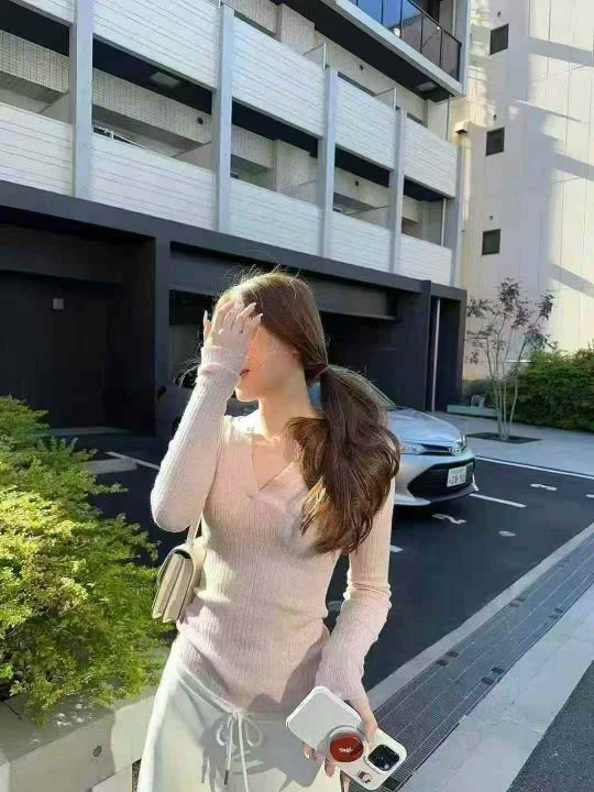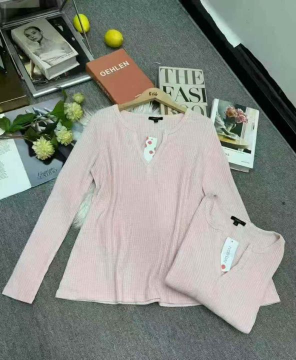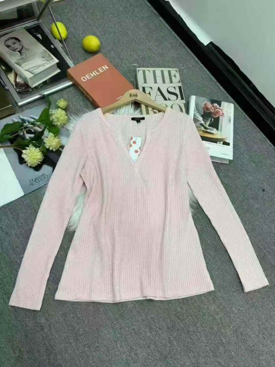 蝶宝嘻 v领粉红色上衣修身显瘦秋冬百搭长袖打底针织衫,100件,码数S-XL,水袋装(款号0604#3
