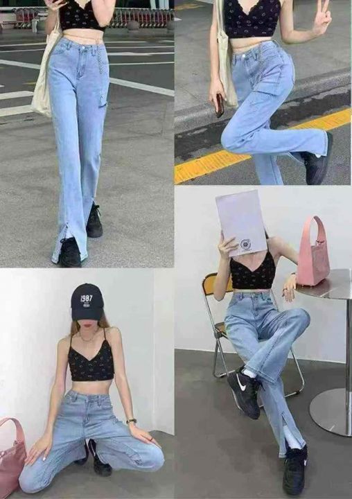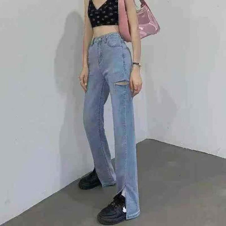 垂坠感女装mm宽松显瘦高腰破洞开叉牛仔裤,网络图仅供参考,码数:XS-XL,数量281条,独立包装