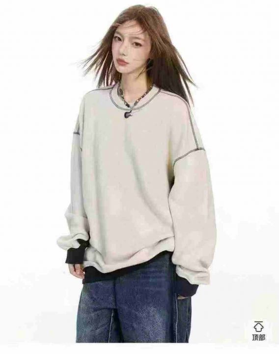 ☕️纯棉毛圈卫衣美式复古圆领拼接撞色插肩卫衣女春秋款上衣287件全清8.8元 分货9.9元 码数S- XL,单款单色,独立包装[庆祝][庆祝]
