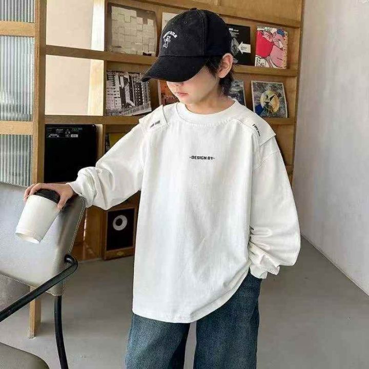 男童长袖T恤春秋款2025新款中大童白色男孩纯棉青少年秋季体恤上衣,独立包装货品干净,数量101件,尺码140-170