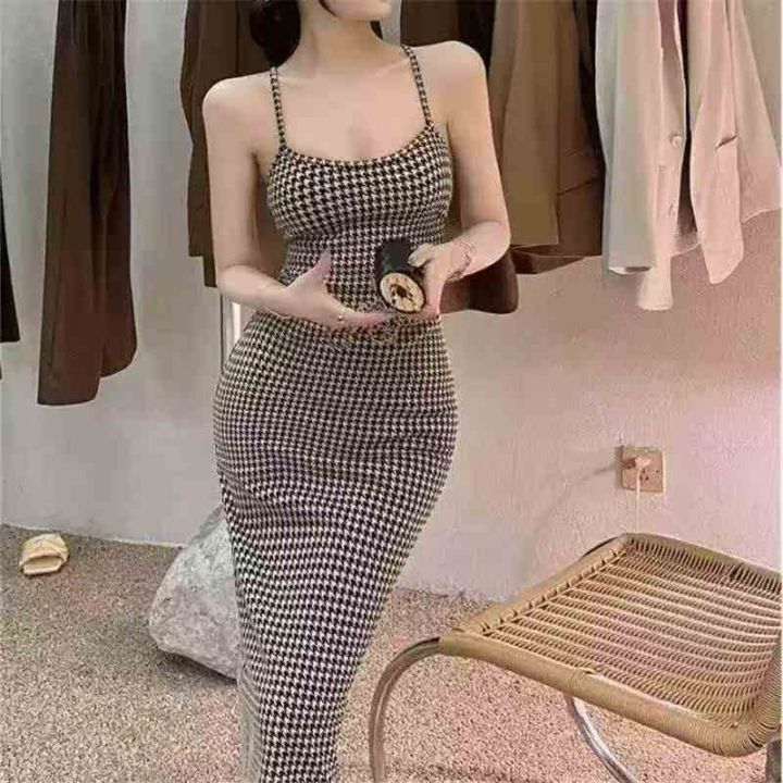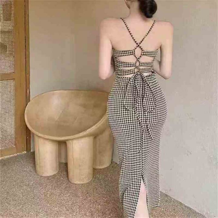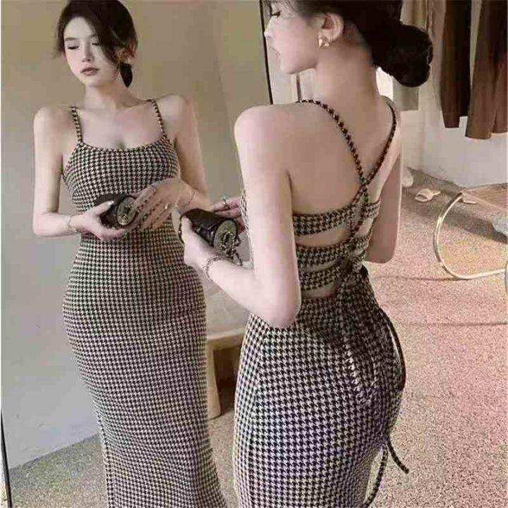 9.9清118件高级感复古千鸟格吊带连衣裙女夏季纯欲风性感露背收腰中长款包臀裙 面料质感杠杠滴实体店可入码数S-XL 独立包装带吊牌。 货号:1323