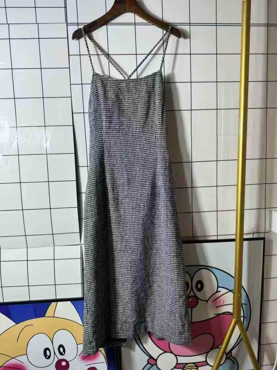 9.9清118件高级感复古千鸟格吊带连衣裙女夏季纯欲风性...