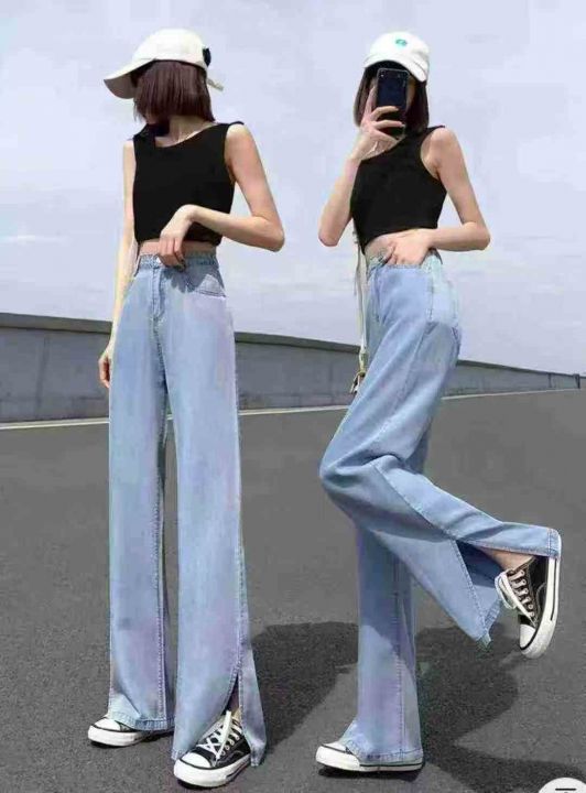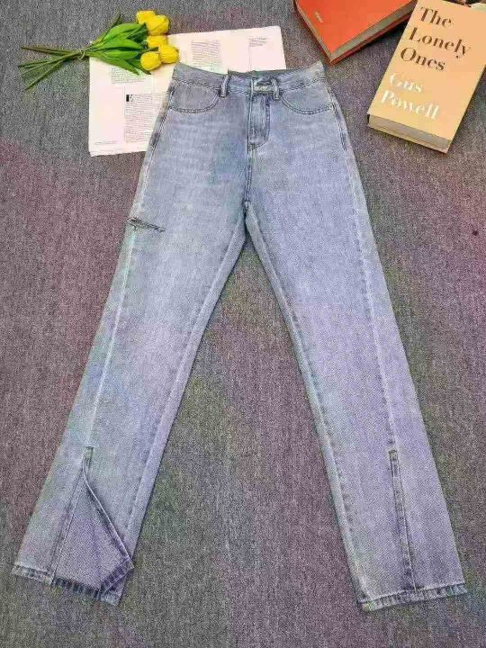 垂坠感女装mm宽松显瘦高腰破洞开叉牛仔裤,网络图仅供参考,码数:XS-XL,数量281条,独立包装