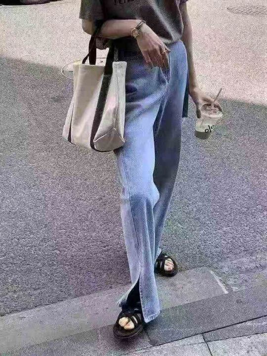 全清9.8垂坠感女装mm宽松显瘦高腰破洞开叉牛仔裤,网络...
