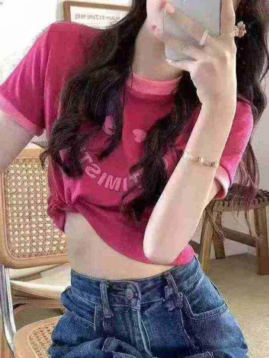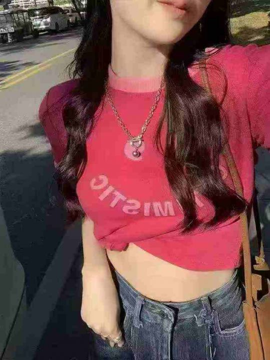 字母印花拼色正肩短袖t恤女夏季甜辣妹性感修身短款上衣,独立包装,码数1-4码,数量228件,货号0912#35
