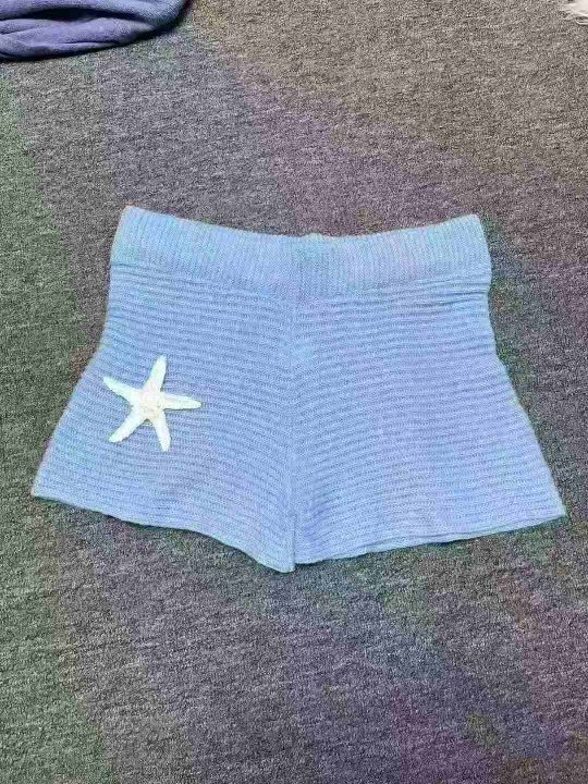 1000件左右美式辣妹撞色星星针织短裤低腰显瘦显臀休闲...
