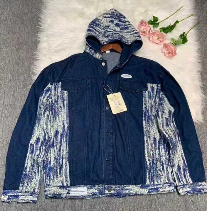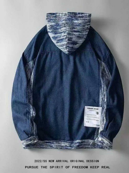 美式复古连帽牛仔外套男潮牌ins宽松百搭夹克韩版潮流假两件外套200件,独立包装,货品干净整洁,全清福利价22.8元,分货➕1