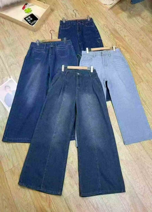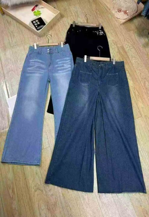 #Lady jeans wholesale外贸单大码宽腿直筒阔腿女士牛...