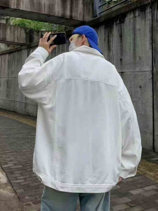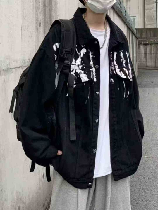 小众设计春秋季黑色牛仔外套男款复古宽松夹克400件,...