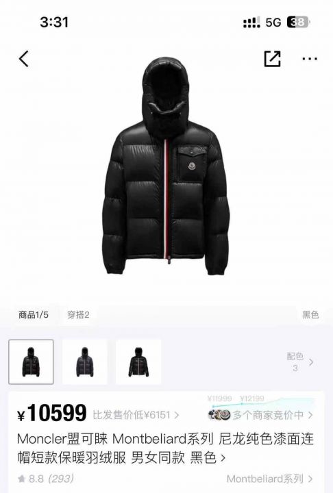 Moncler盟可Montbeliard系列 尼龙纯色漆面连帽短款保...