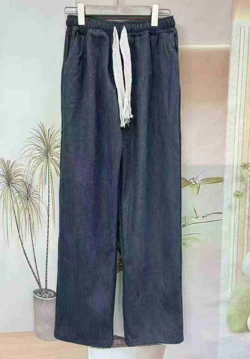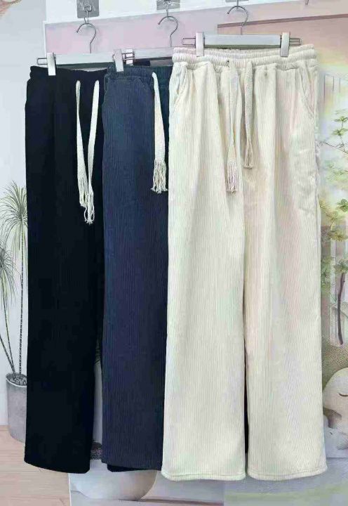 高品质男女同款加绒灯芯绒直筒阔腿裤,松紧腰细绳,独立包装,单款3色,黑色少,码数S~~3XL,总数量1075件,分货加一