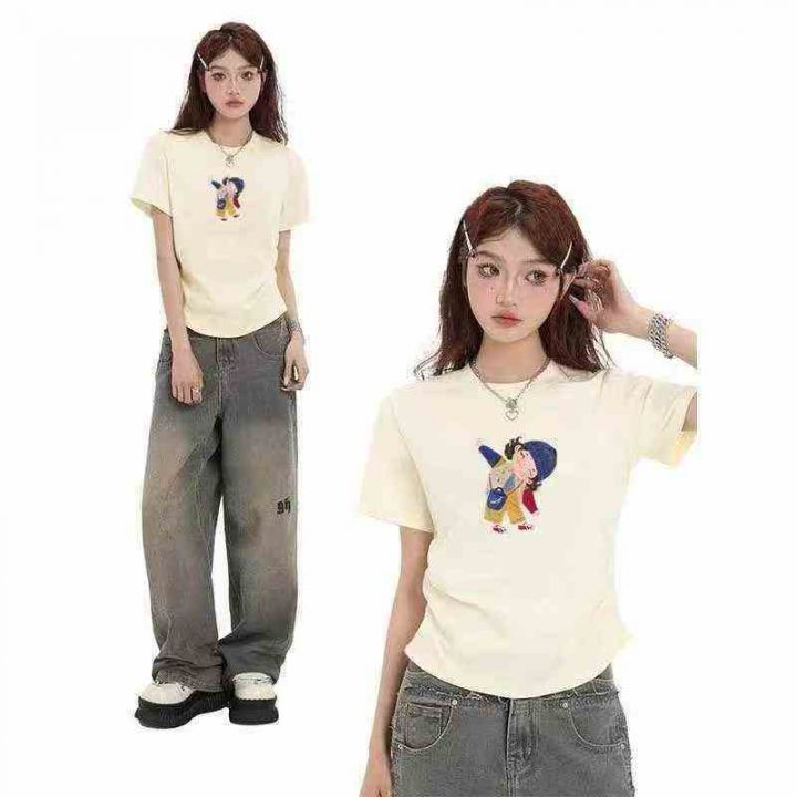 露脐上衣女高腰紧身设计感辣妹夏纯棉短款t恤甜辣妹正肩体恤上衣,韩标,独...