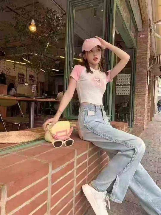 [月亮]:美式插肩纯棉/棉拼冰丝辣妹T恤
