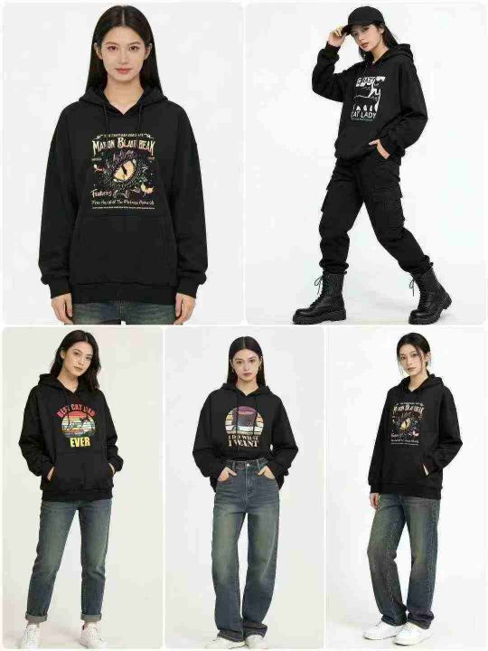 全清:7.8时尚潮流黑色系印花连帽男女卫衣,小整花型...