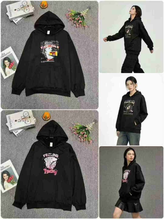 时尚潮流黑色系印花连帽男女卫衣,小整花型图案多,品质好,数量:370件左右,码数:S-2XL,独立拉链包装。