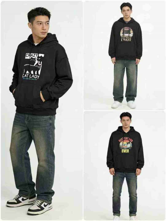 全清:7.8时尚潮流黑色系印花连帽男女卫衣,小整花型...
