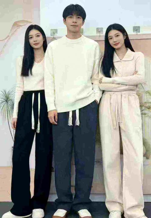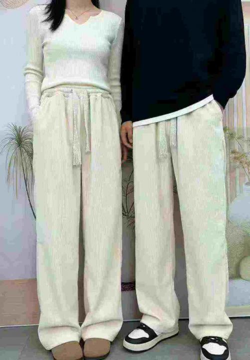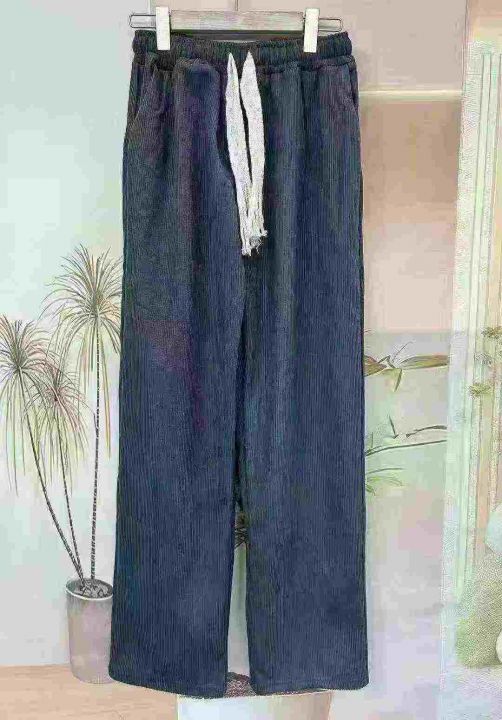 高品质男女同款加绒灯芯绒直筒阔腿裤,松紧腰细绳,独立包装,单款3色,黑色少,码数S~~3XL,总数量1075件,分货加一