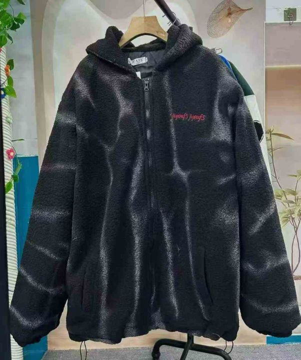 冬季保暖外套,加棉加厚连帽羊羔绒外套,大版型拉链宽松版,独立包装,单款2色,黑色杏色,杏色极少,码数M~~XXL,M都可以穿到150左右,总数量900件左右