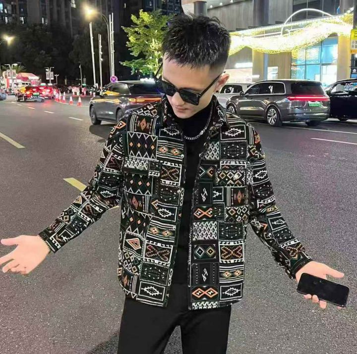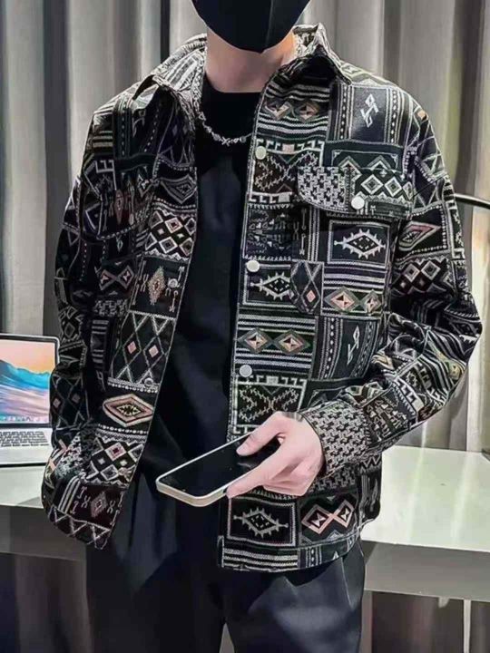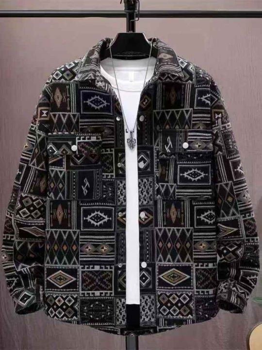 复古长袖牛仔衬衫男士春秋季新款潮牌民族风印花宽松工装休闲外套300件,独立拉链袋包装,货品干净整洁,尺码M~3XL,全清福利价22.8元分货➕1