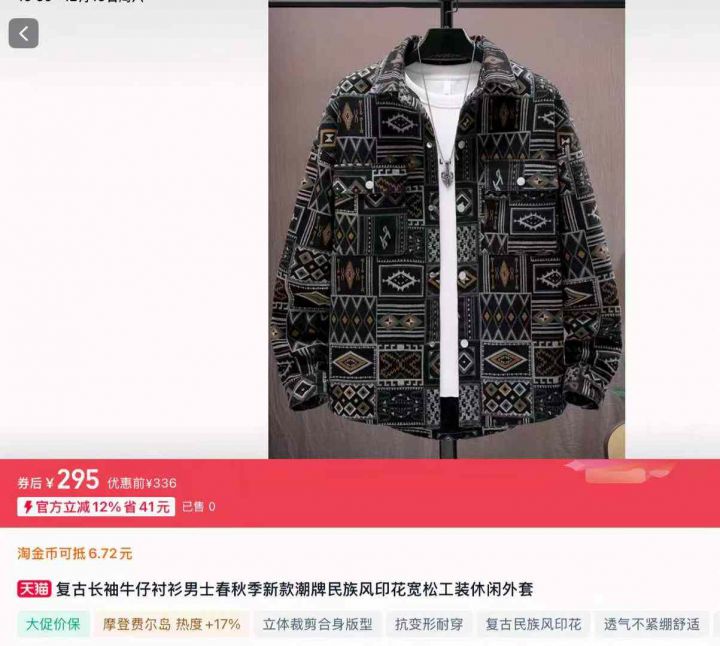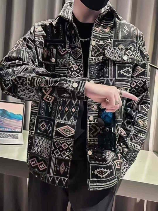 复古长袖牛仔衬衫男士春秋季新款潮牌民族风印花宽松工装休闲外套300件,独立拉链袋包装,货品干净整洁,尺码M~3XL,全清福利价22.8元分货➕1