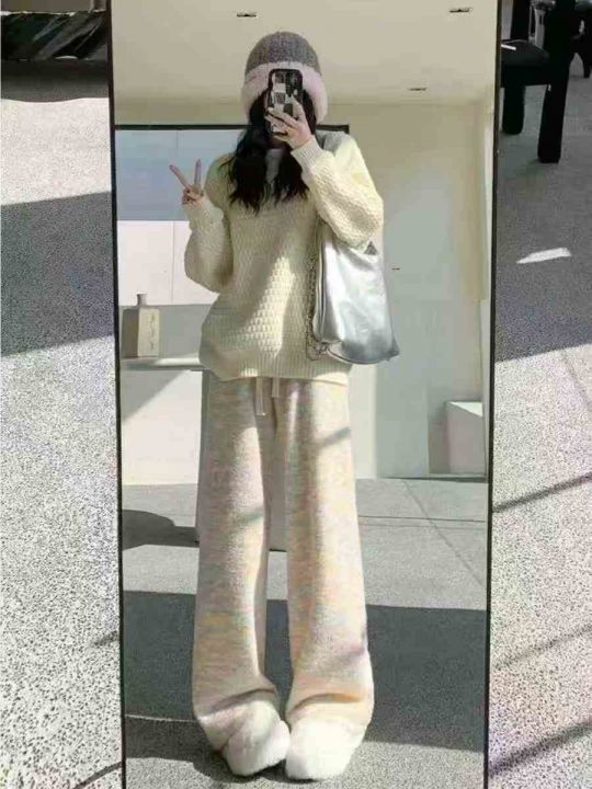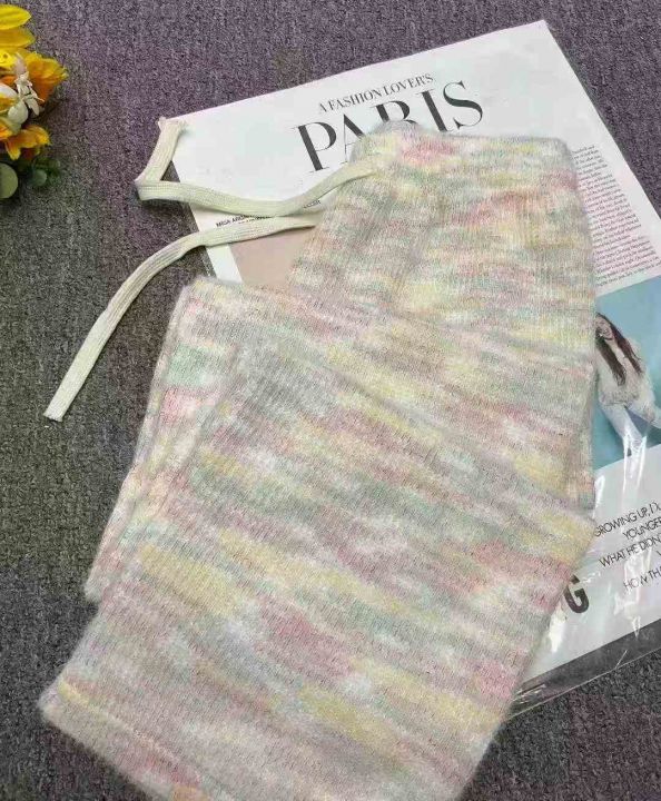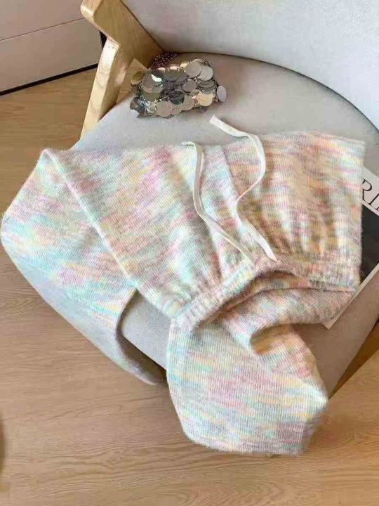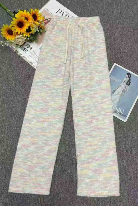 秋冬新款网红爆款韩系彩虹泡泡直筒阔腿糯米毛线裤,独...