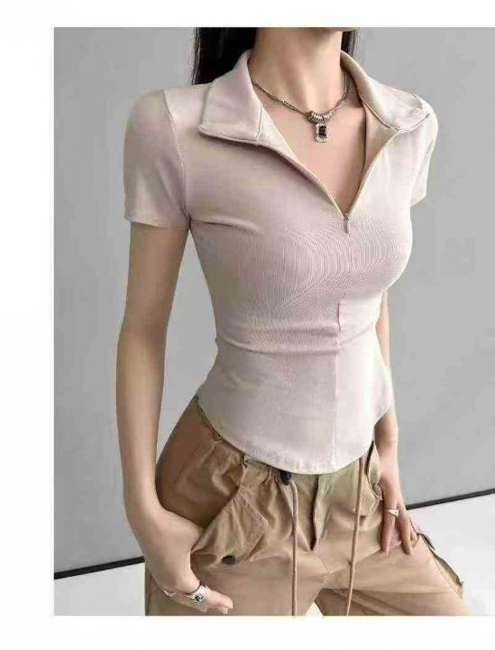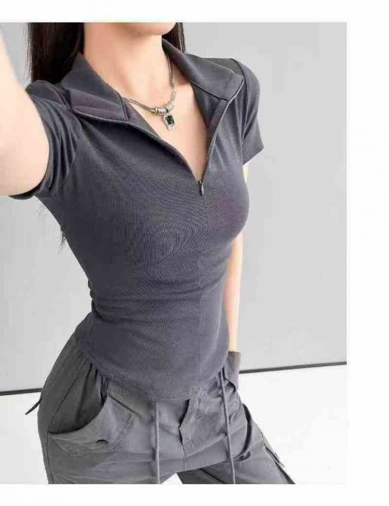 [發]纯欲拉链翻领辣妹短袖体恤170件