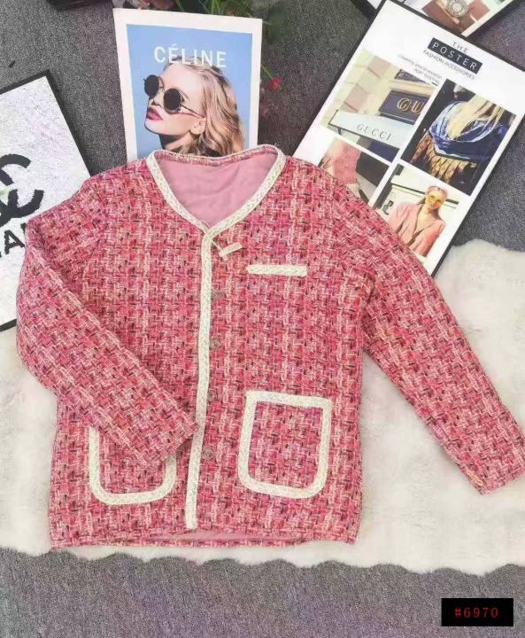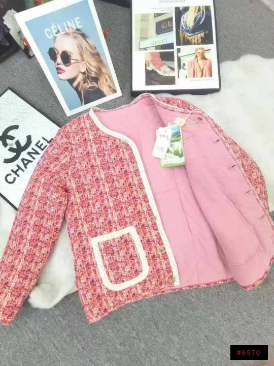 羊绒桑蚕丝小香风花棉袄,清22.8商场下架,数量1323...