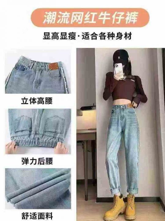 新款修身松紧显瘦宽松哈伦小个子牛仔裤,独立包装,整...