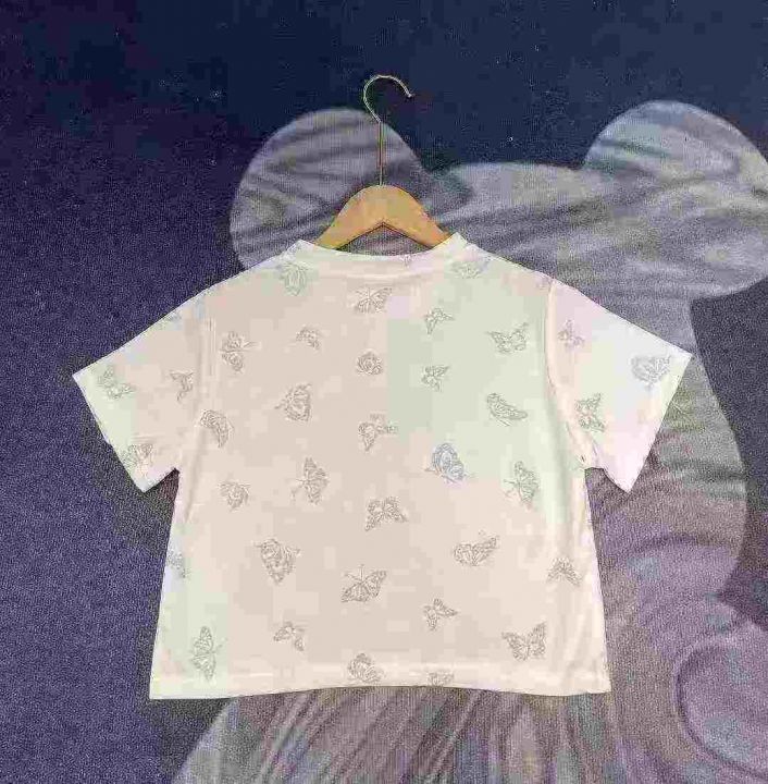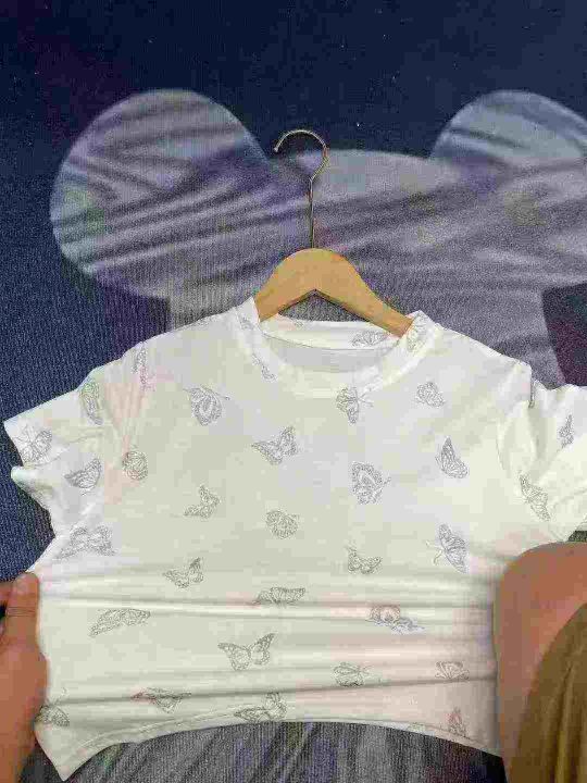 185件高品质纯棉靓妹款蝴蝶短款T恤,单款单色,S-2XL,独立包装(图片模糊正常现象,联系️发原视频)