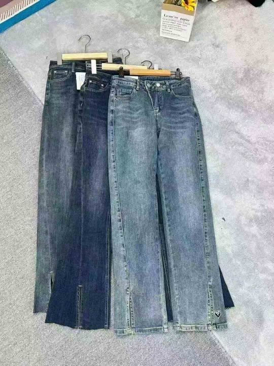 全清13.8开叉牛仔裤女高腰2025春秋新款修身显瘦高弹力...