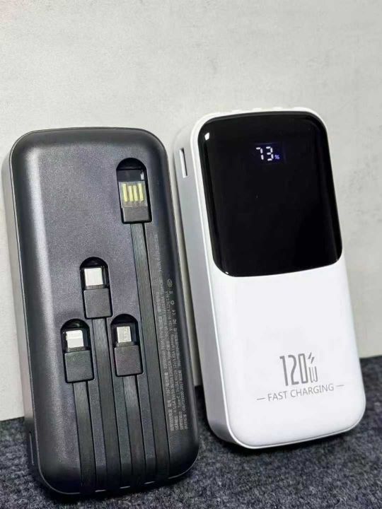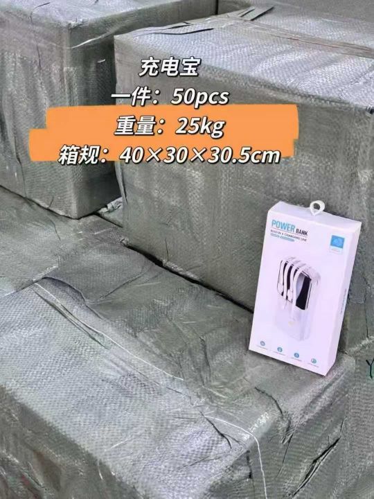 充电宝足容20000毫安,超级快充,带4条线,25年电池A品带3C认证,带3C检测报告,22.5W带线快充,全新封膜,箱规箱规40×30×30,一件50pcs,黑白2色,新入库5000pcs