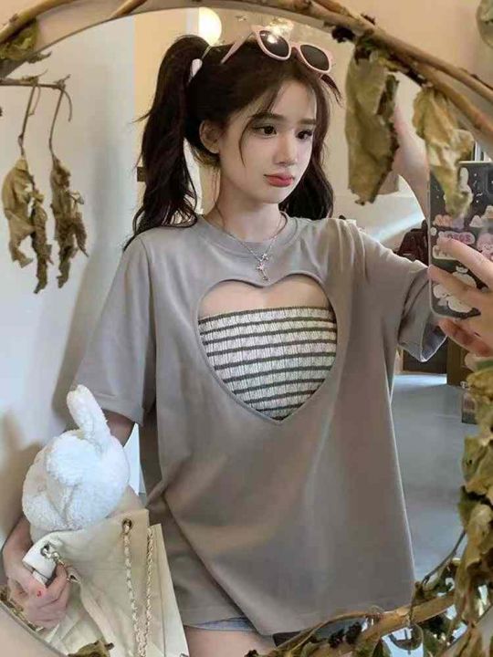 [發]cc同款上衣镂空爱心短袖70件左右设计感辣妹宽松气...