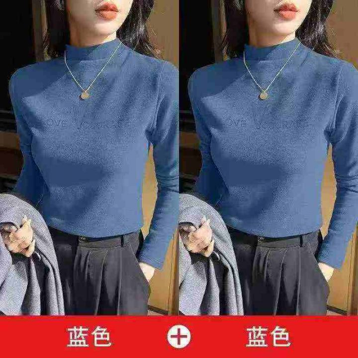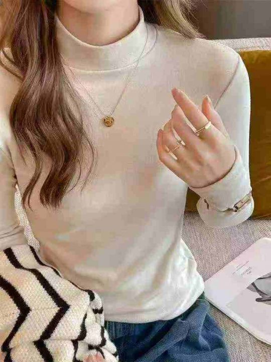 ☕️半高领德绒打底衫女秋冬加厚保暖内搭长袖中领上衣...