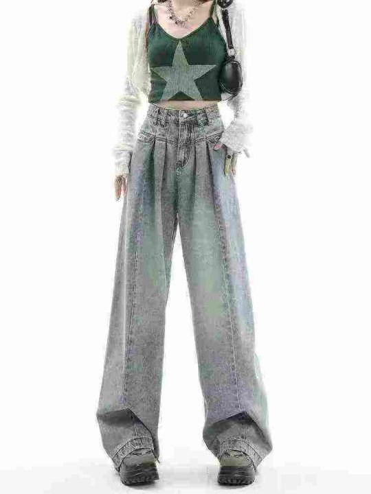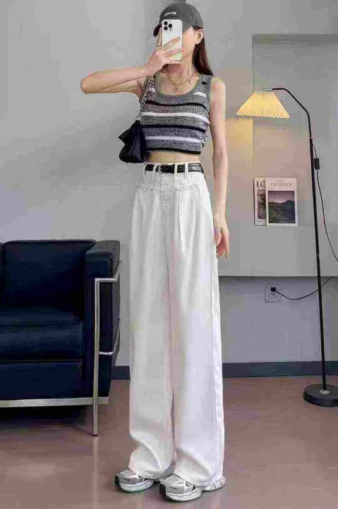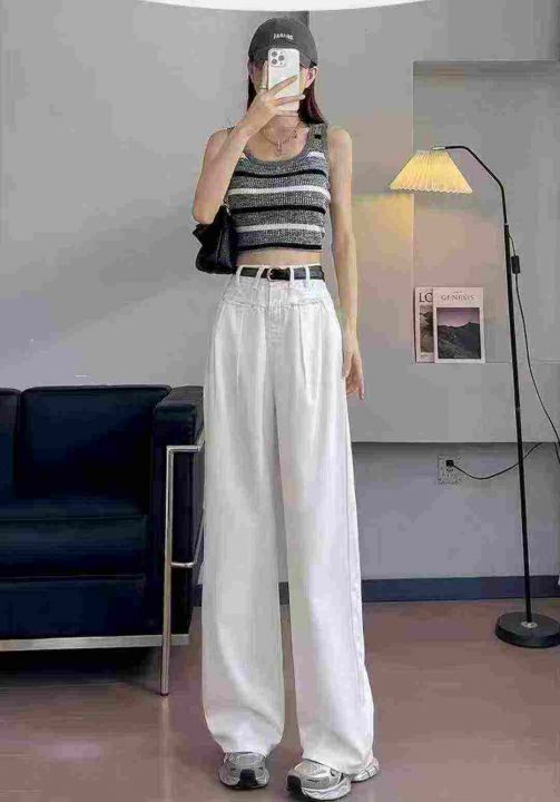 春秋新款高品质女装网红大阔腿牛仔长裤,独立包装带吊...