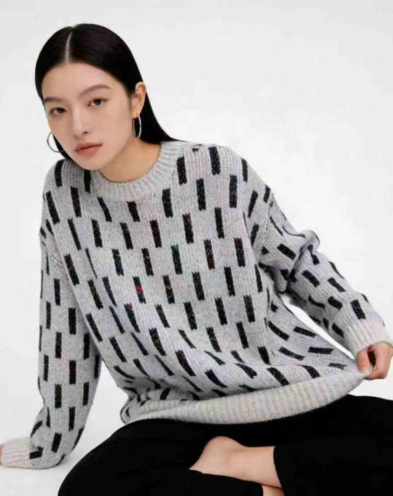 秋冬新款宽松提花大板加厚圆领套头毛衣,独立包装,均...