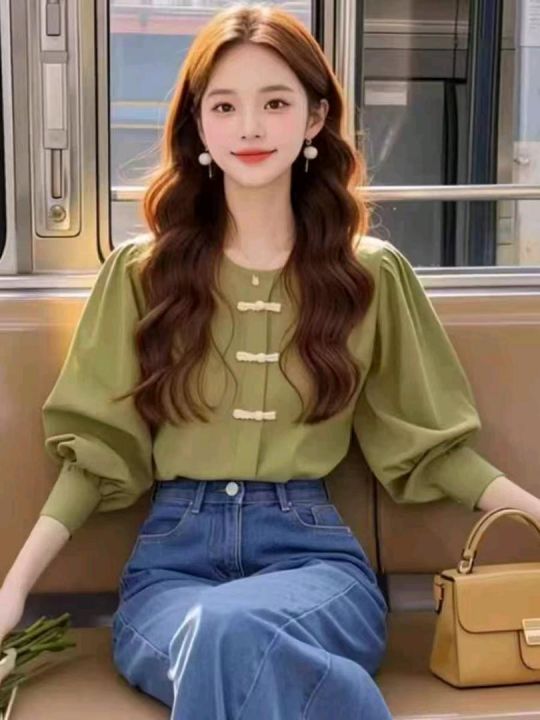 新中式国风领长袖衬衫上衣御姐炸街漂亮超好看小衫女,...