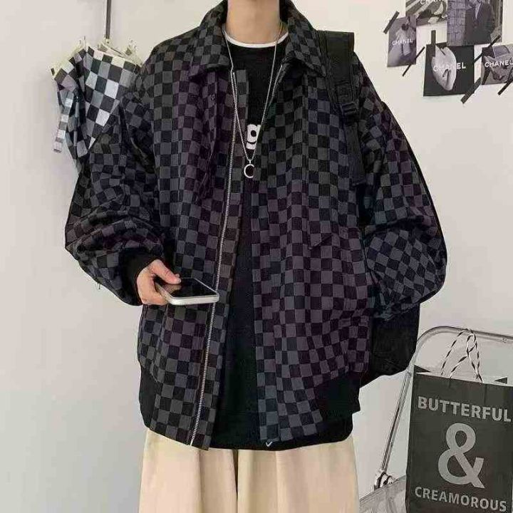 棋盘格外套男春秋季bf潮牌宽松炸街上衣日系复古休闲痞帅工装夹克大版型宽松外套,独立包装,码数M--XXL,总数量300件,分货➕1
