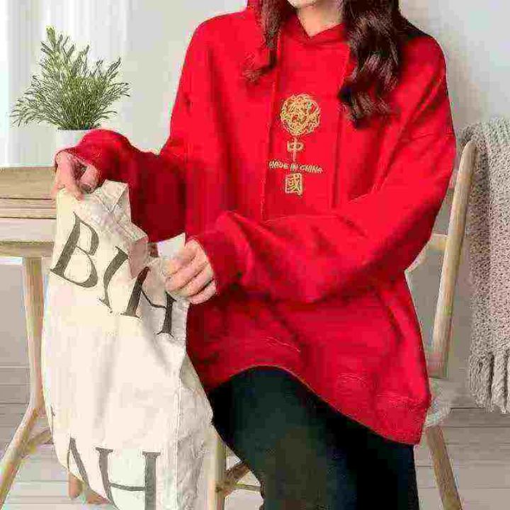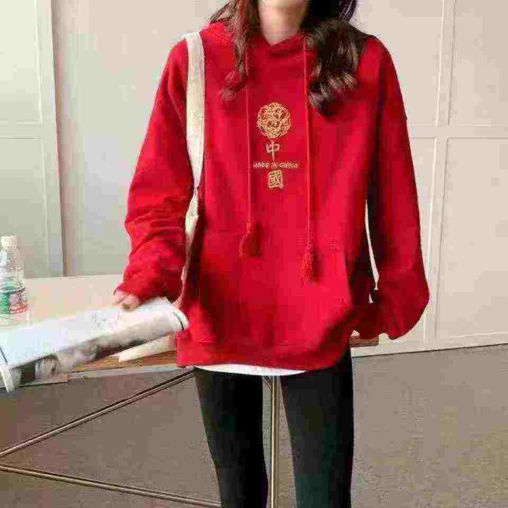 红色双层连帽卫衣宽松秋冬国潮外套中国风卫衣女学院风春秋款,数量220件,码数s-2xl,独立包装,全清5.5元